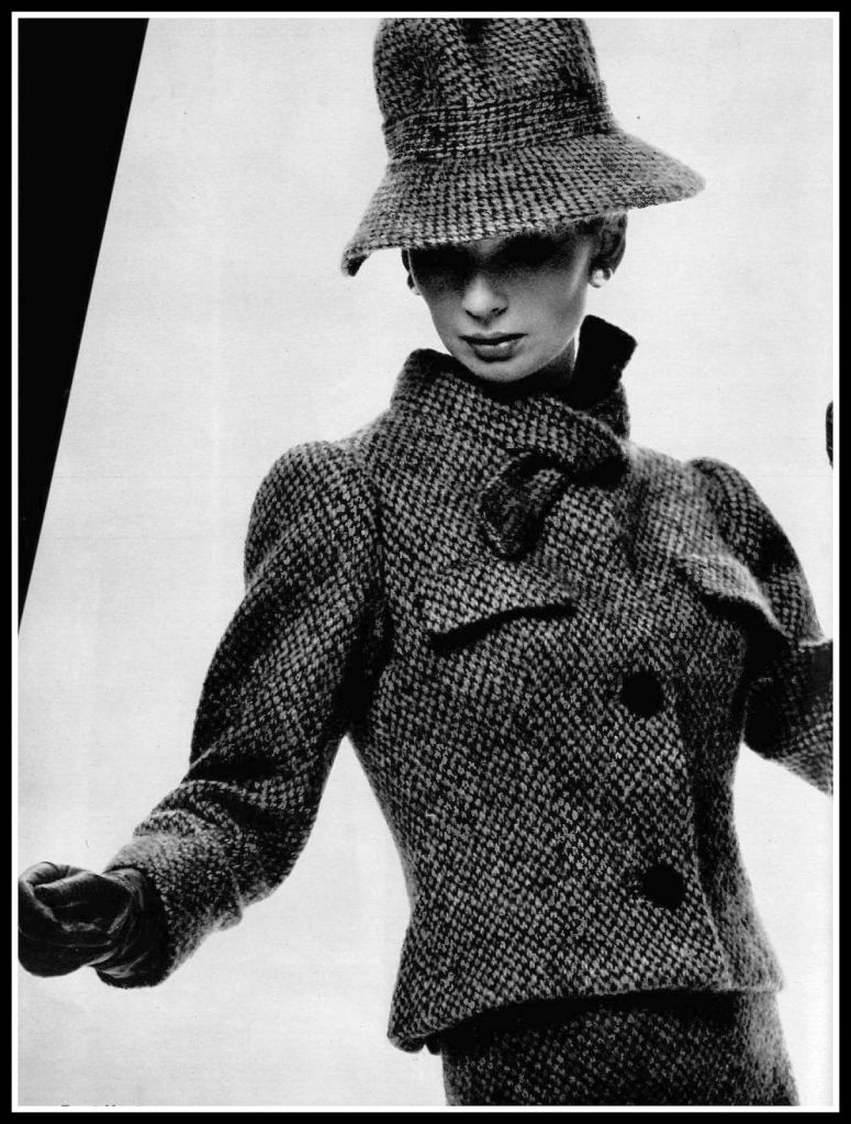 Pierre Cardin, was a well known designer for his tweed fashions, and of course who can leave out Chanel. Which woman doesn’t love a Chanel tweed purse or those Tweed skirt suits.