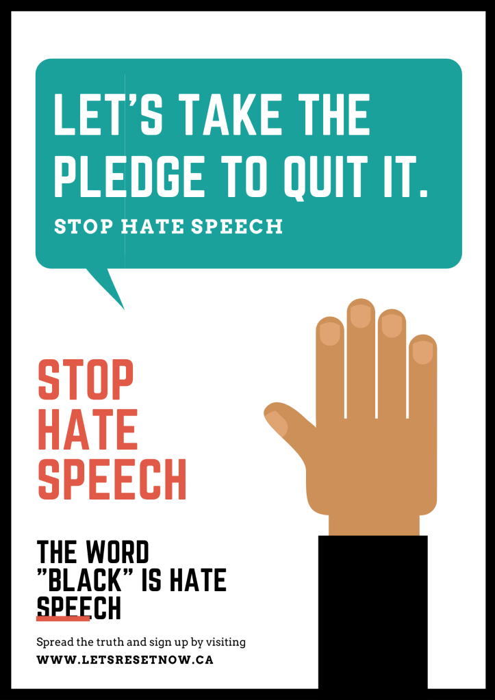 The word “Black” is a hate speech continued to be used to describe People of Colour.