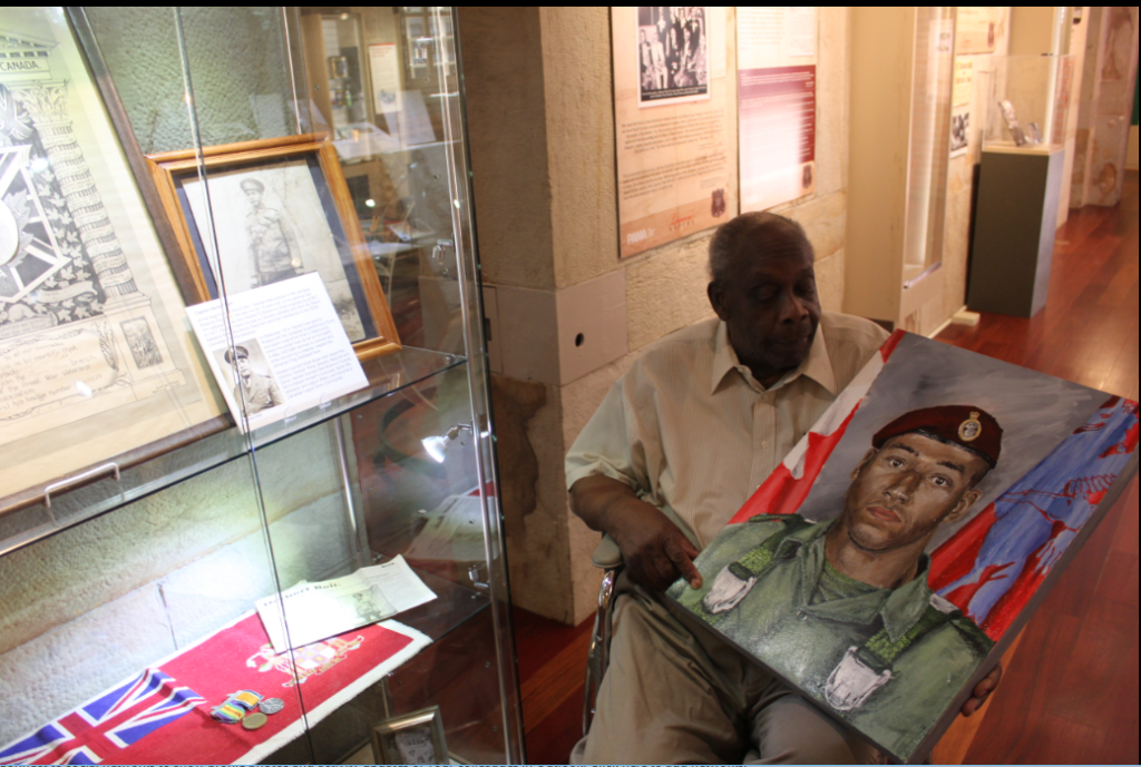 (Photos L-R:) Kerry Ann Thomas and Judge Stanley G. Grizzle – Canadian Veteran, Kerry Ann Thomas with Hon. Judge George Carter Canadian Veteran. Hon. Judge George Carter at the Peel Art Museum and Archives holding a photo of Canadian veteran from Black Veteran Affairs on display at PAMA.
