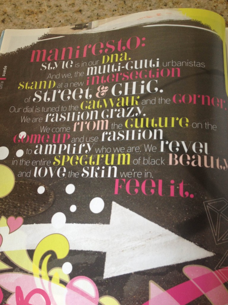 Style is in our DNA. And we, the multi-culti urbanistas stand at a new intersection of street and chic. Our dial is tuned to the catwalk and the corner. We are fashion crazy. We come from the culture on the come up and use fashion to amplify who we are. We revel in the entire spectrum of black beauty and love the skin we’re in. Feel it.
